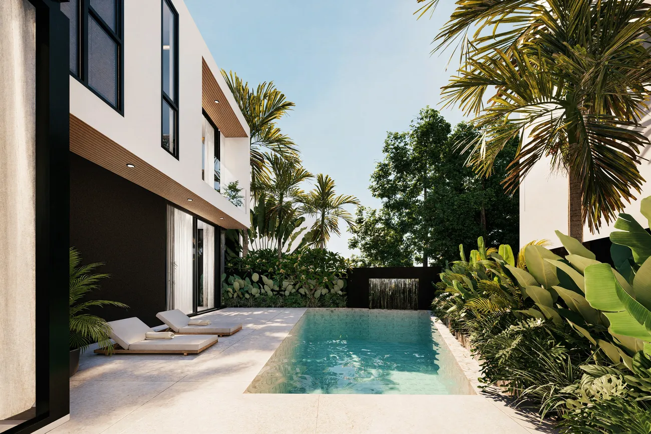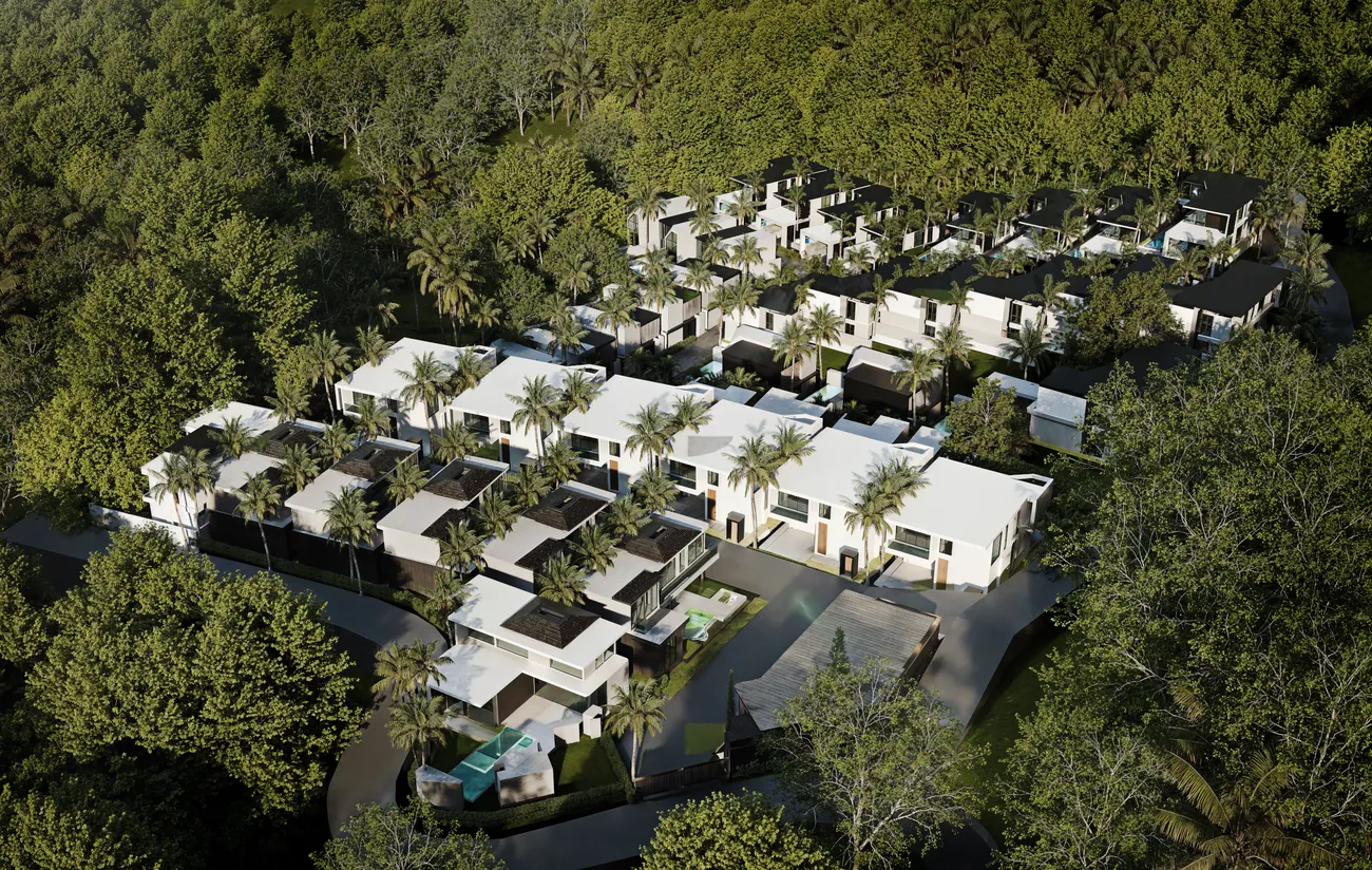 Aileen Villas Layan Phase V - Forty villas on a gentle slope above Layan, where Trinity Property is putting together the fifth chapter of its M.O. without trying to outshout the previous ones. Two-story volumes with private pools, sliding glass walls that blur the line between living room and terrace, and interiors in cool earth tones where minimalism is not emptiness but air . Three to four bedrooms, western kitchens with islands, quality materials assembled so that the new villa feels like it has stood here forever .