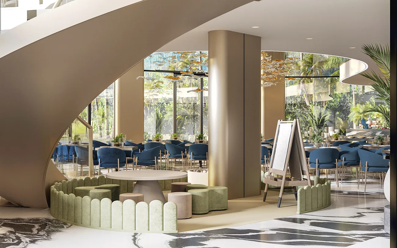 The architecture of the project includes two seven-story buildings with a total area of almost a hectare, where on the first floors there are apartments with their own private pools. The internal filling goes far beyond the standard condominium: panoramic restaurants on the roof with sunset views, lounge areas, spa center with detox programs, professional fitness and even a water park for children. And 30% of the area is deliberately given over to infrastructure - from co-working spaces to wine tastings and concierge service. Being only 30 minutes from the airport, combined with its proximity to golf courses, yacht marinas and five-star hotels, makes Atrium equally attractive for both an easy entry investment and those looking for spacious apartments for a fulfilling life by the ocean.