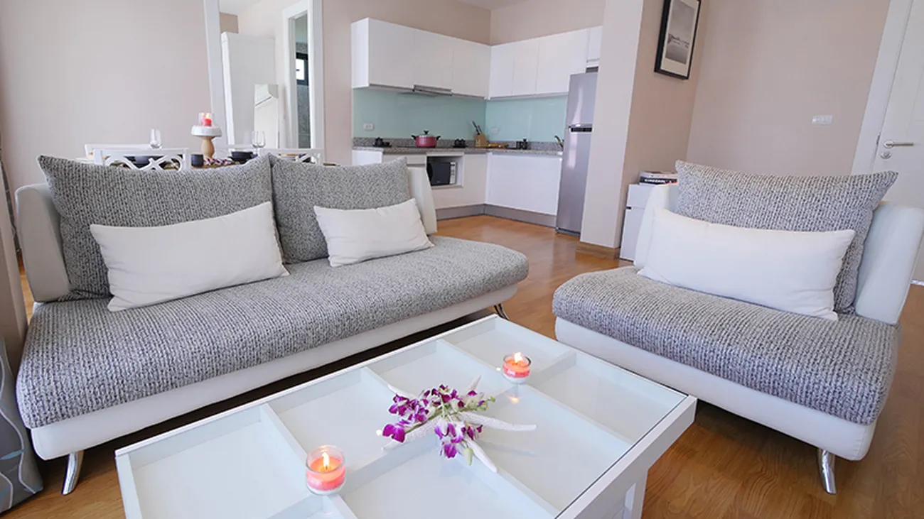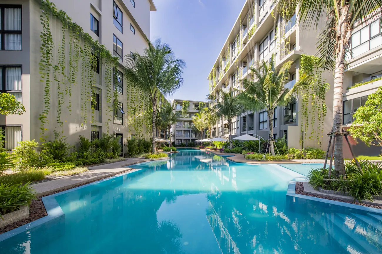 The complex features 295 well-designed residences, including 1-2 bedroom condominiums and 2-4 bedroom penthouses. Each condo offers fully equipped living spaces with gourmet kitchen-dining areas, luxurious bathrooms and spacious private terraces overlooking 2,000 square meters of tropical resort landscape and water area.