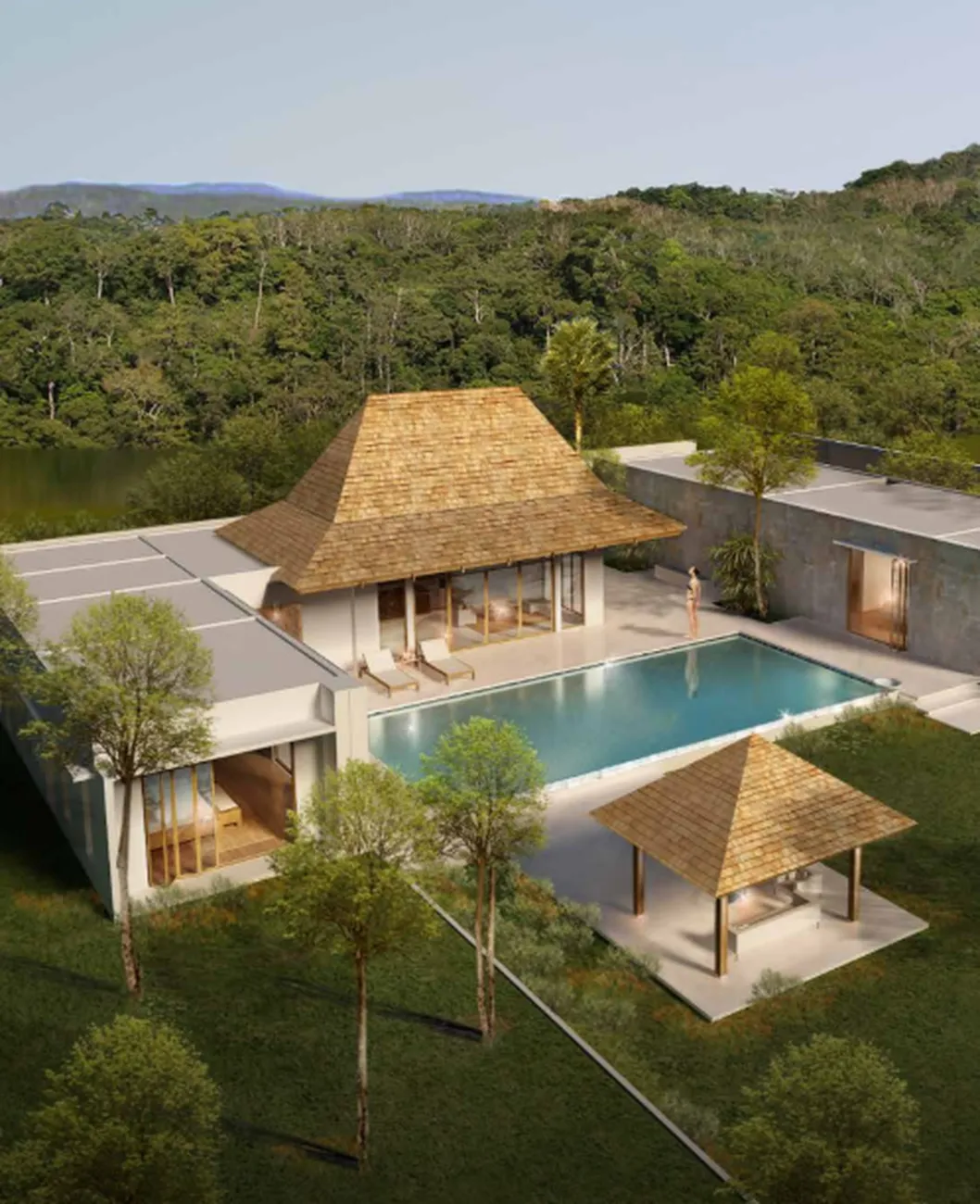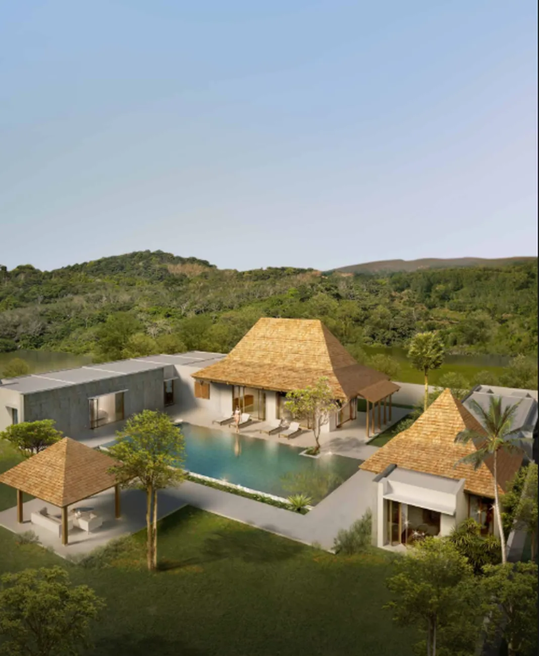 Mountain Breeze is a project where architecture does not argue with the topography, but trusts it: a cascade of terraces descends down the hillside so that each villa gets its own angle of view of the green domes of Naiharna and the blue strip of the Andaman Sea. Instead of blank walls, there are windproof teak shutters and panoramic glazing that opens up the living room directly to the pool. There are no air conditioners in the common areas - they are replaced by natural ventilation, which the architect calculated according to the wind rose. Twenty-nine residences, none of them typical: each has its own ceiling height, its own geometry of the plot and the right not to see the neighbor from the bedroom window.