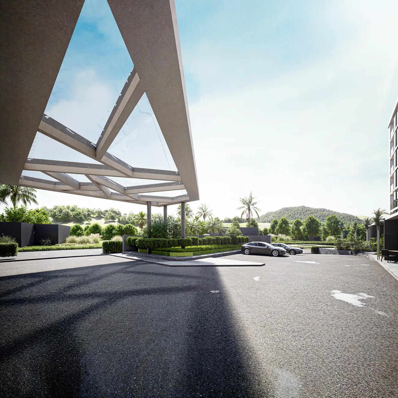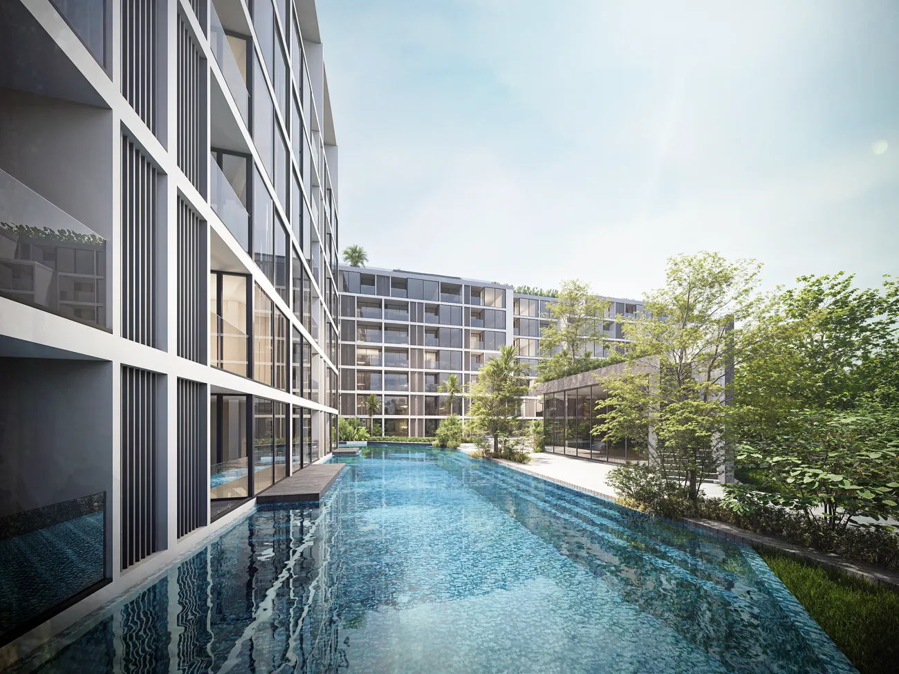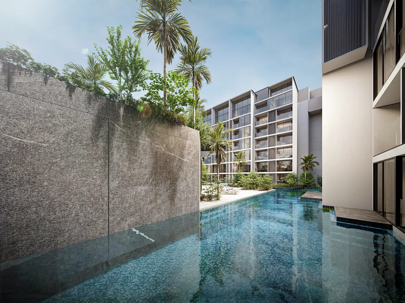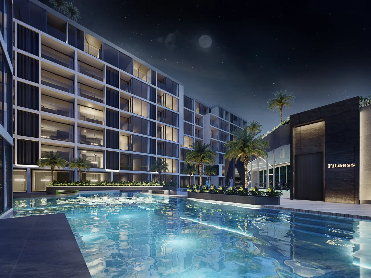 Next Point Condominium - four seven-storey buildings scattered over eight thousand meters of tropical garden so that the distance between the buildings is not a distance but a breath. The architecture here is not looking for loud gestures: 379 residences from compact studios to penthouses with private terraces, a smart home stitched into the walls, and glass that collects Sai Yuan morning in every window. This is not a resort monstrosity but the calibrated rhythm of low-rise Rawai, where concrete is softened by greenery and four pools, including a rooftop infinity pool, work not for records but for quiet .