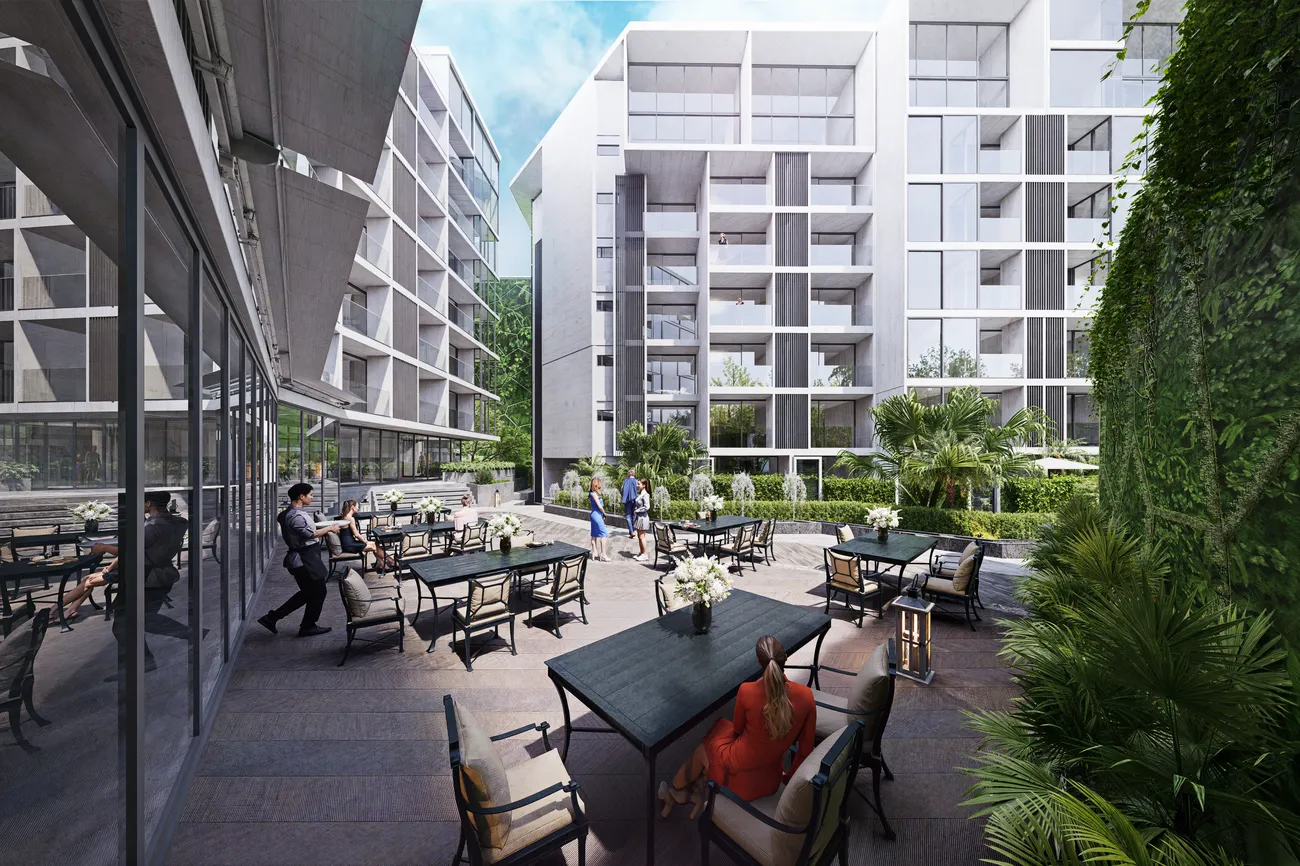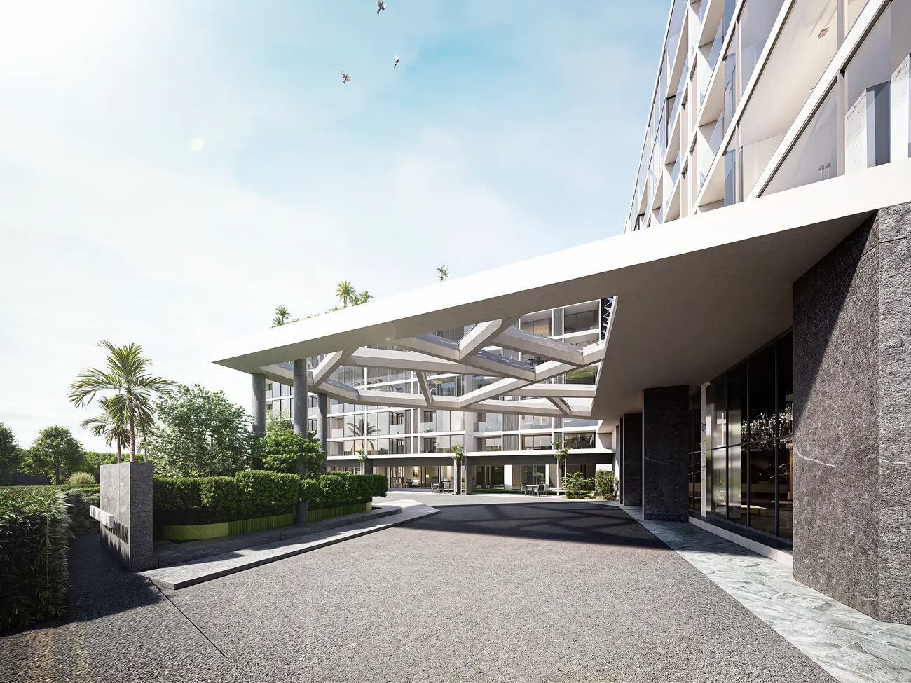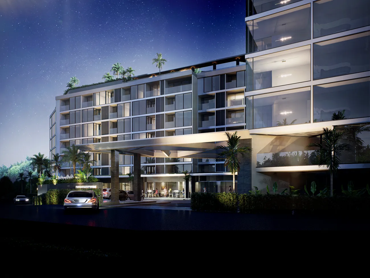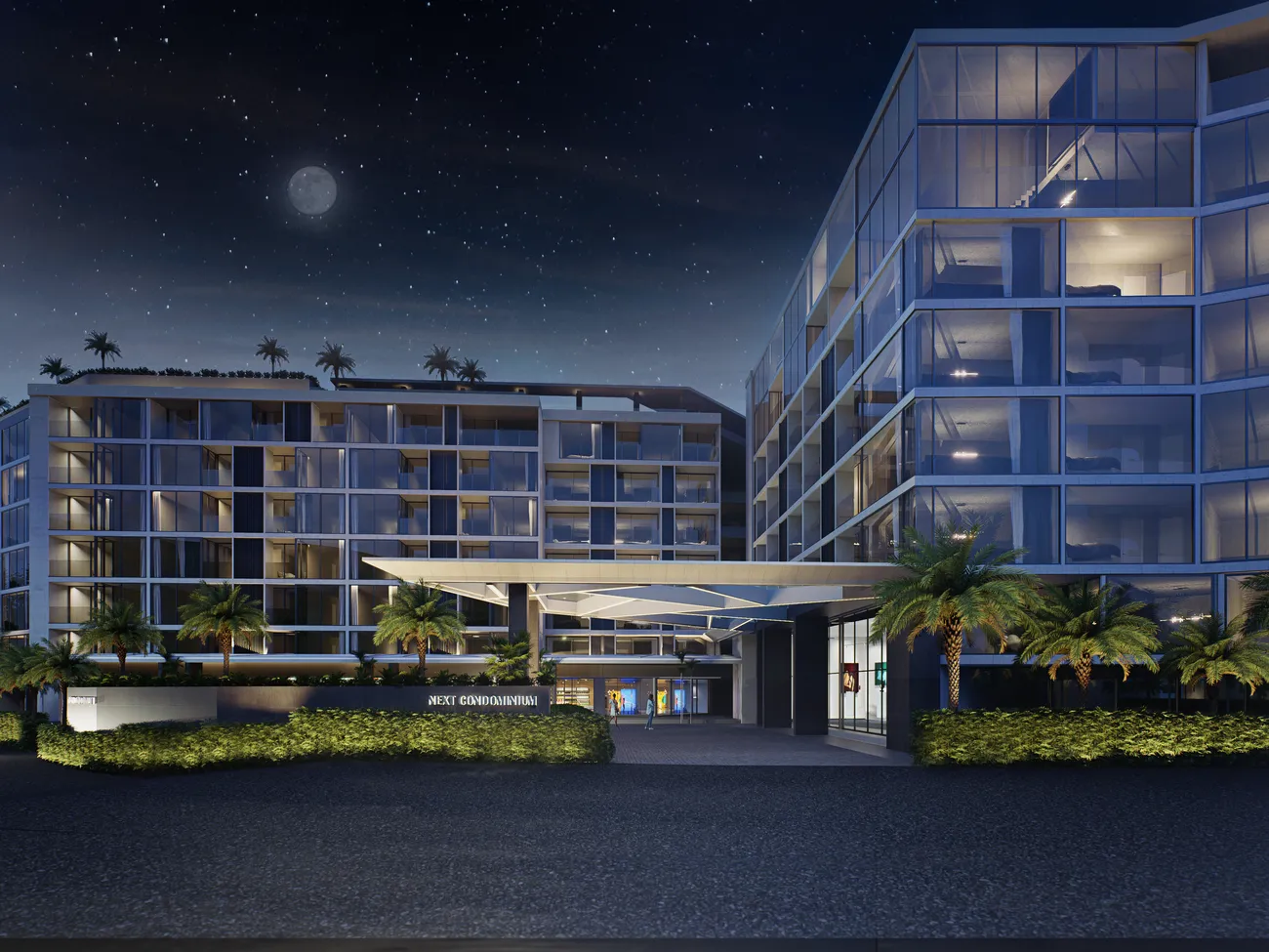 Next Point Condominium - four seven-storey buildings scattered over eight thousand meters of tropical garden so that the distance between the buildings is not a distance but a breath. The architecture here is not looking for loud gestures: 379 residences from compact studios to penthouses with private terraces, a smart home stitched into the walls, and glass that collects Sai Yuan morning in every window. This is not a resort monstrosity but the calibrated rhythm of low-rise Rawai, where concrete is softened by greenery and four pools, including a rooftop infinity pool, work not for records but for quiet .