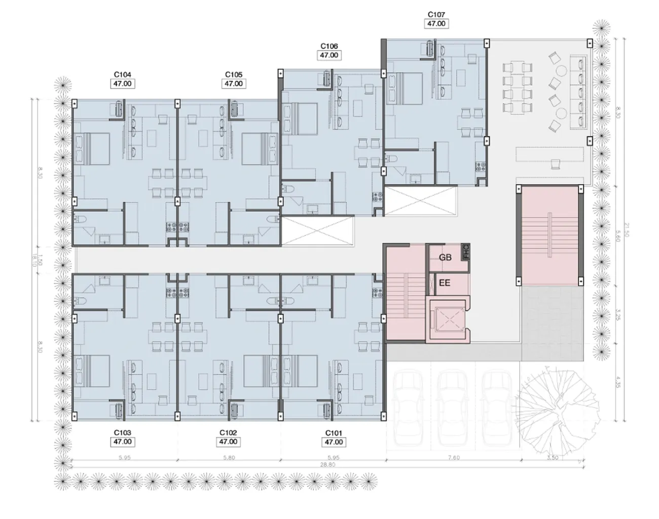 Молодых специалистов и цифровых кочевников — тихий комплекс в оживлённом районе обеспечивает баланс между работой и отдыхом, а развитая инфраструктура Карона отвечает всем повседневным потребностям.