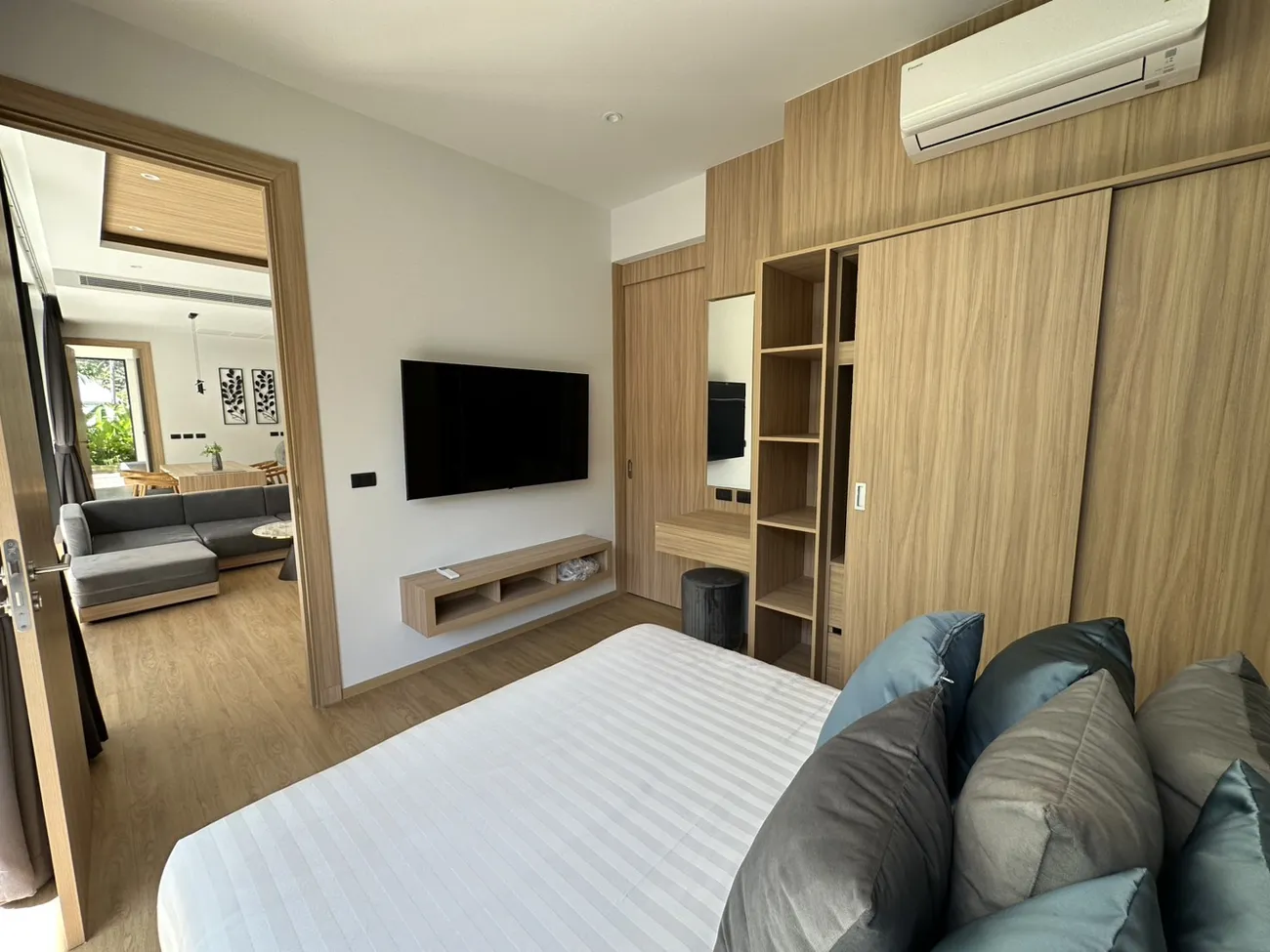 Aileen Villas Phase 2 The Tropico — шестнадцать вилл в Сакху, собранных Trinity Property с узнаваемым почерком: балийско-тайская архитектура, где естественность не декорация, а материал . Частные бассейны вписаны в планировку так, что главная спальня и гостиная выходят к воде раздвижными стеклянными стенами, стирая грань между домом и садом . Просторные объёмы от 125 до 223 квадратов, двухуровневые решения, крытые парковки и продуманная приватность посёлка, где тишина не означает пустоты .